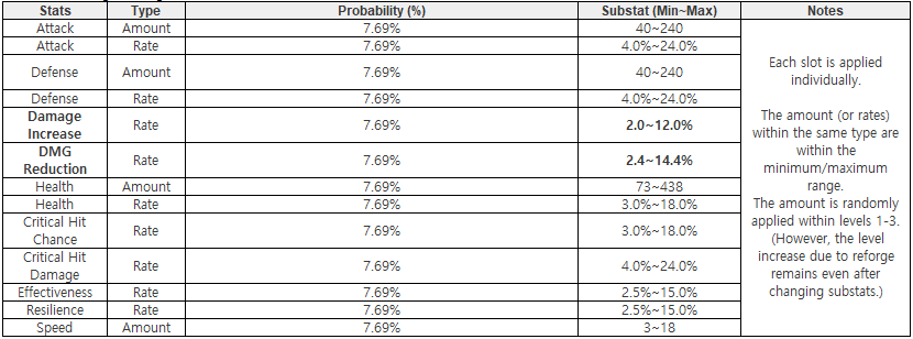※ The same type of stat and value will be applied regardless of gear type and stats that are already applied will not be duplicated.