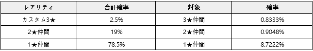 ※カスタム選択スカウトに必要なカスタム仲間交換ptはカスタムスピックアップスカウトでのみ獲得でき、保有している既存のキャラ交換ptではスカウトできませんのでご注意ください。