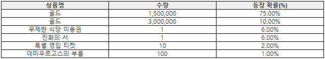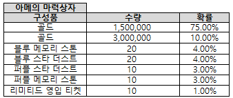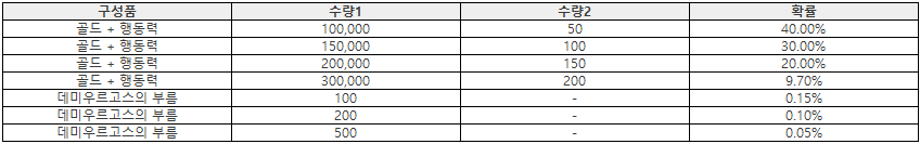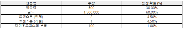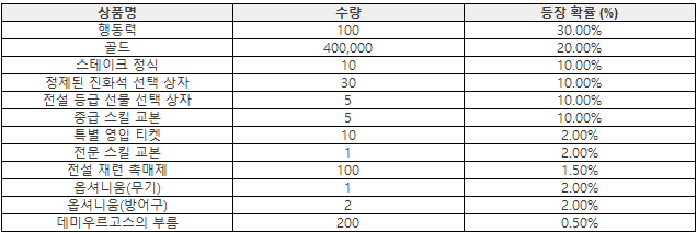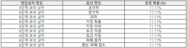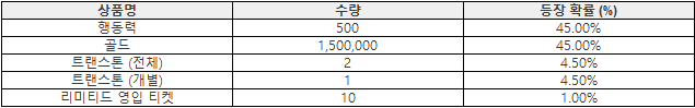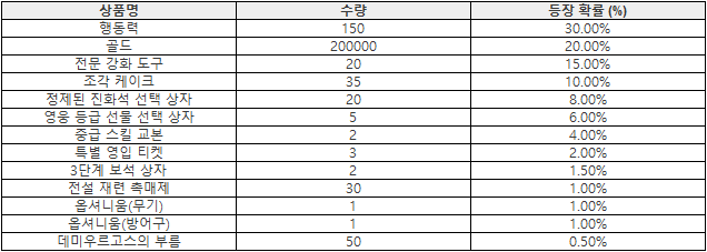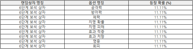 - 랜덤박스가 포함된 패키지의 박스 확률은 아래와 같습니다.