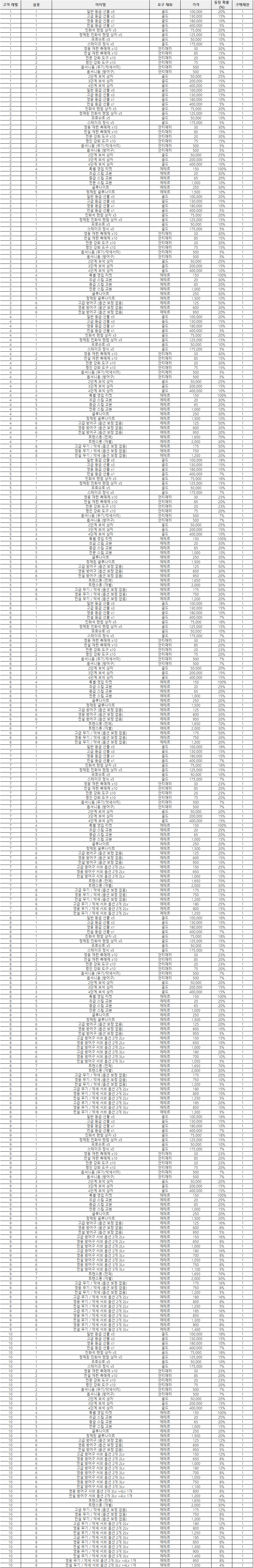 - 리코의 비밀상점에서 구매할 수 있는 아이템 등장 확률 정보를 안내 드립니다.